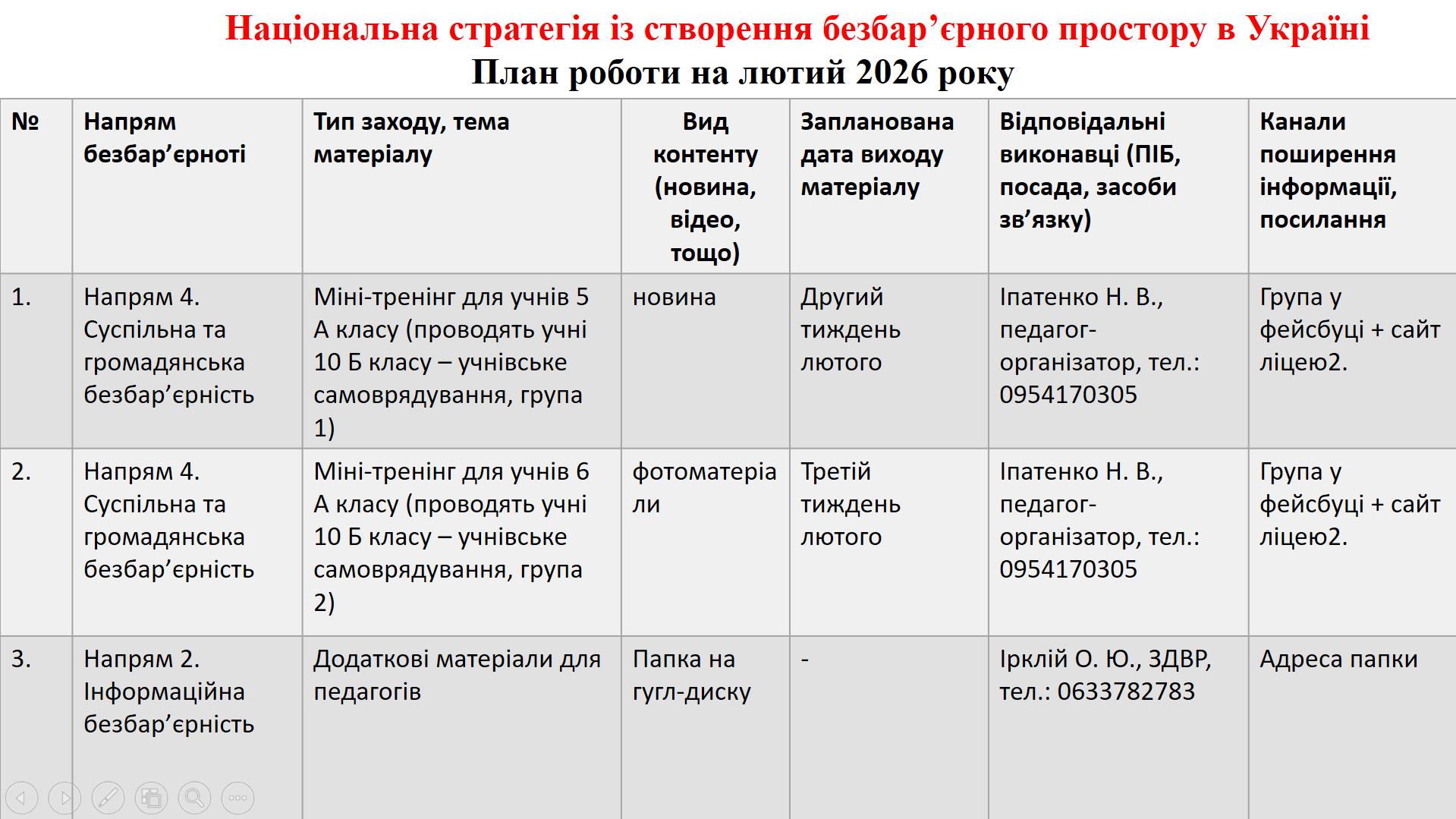 План заходів щодо створення безбар'єрного простору на лютий 2026р.