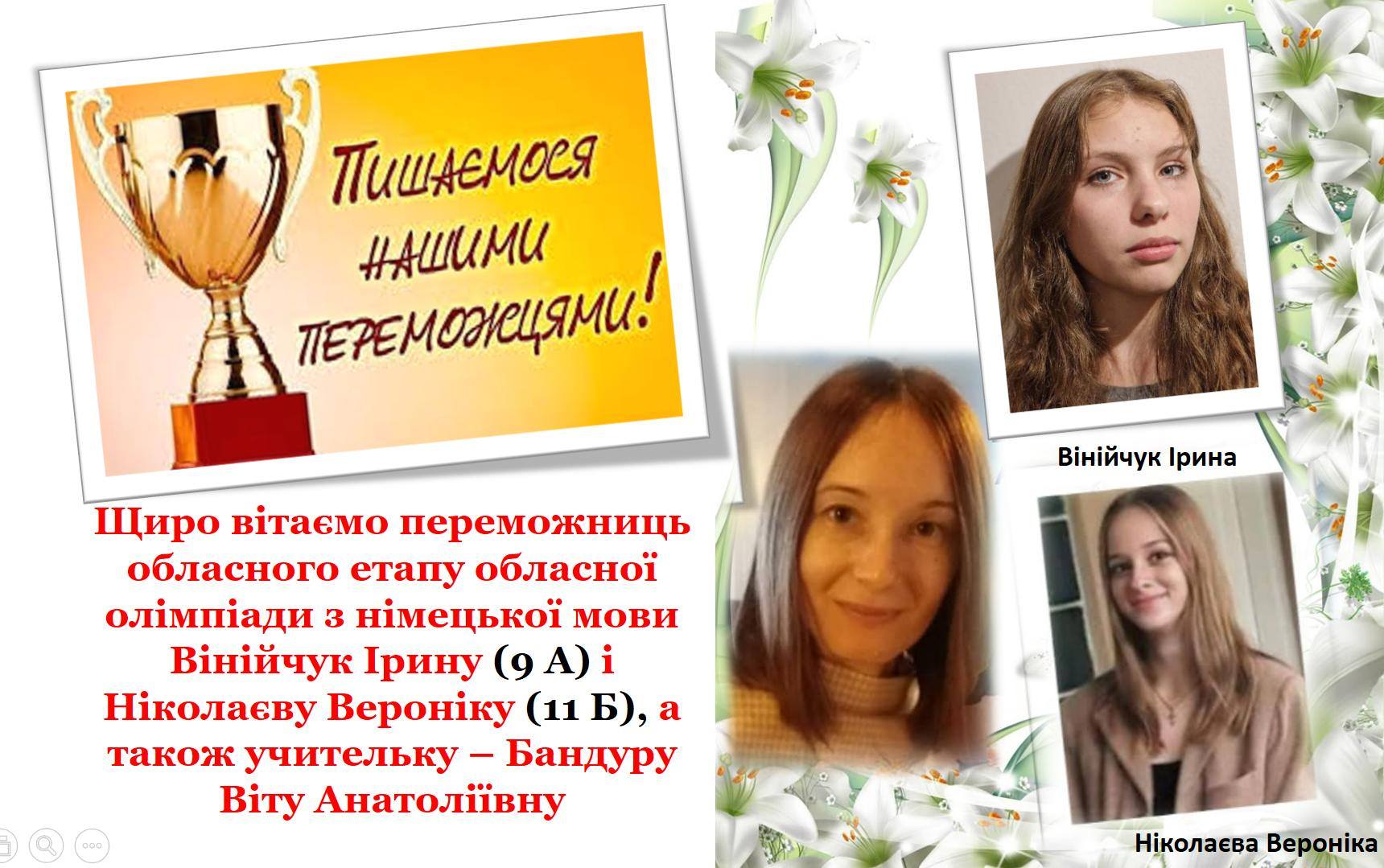 Щиро вітаємо наших переможців олімпіад та їх вчителів!