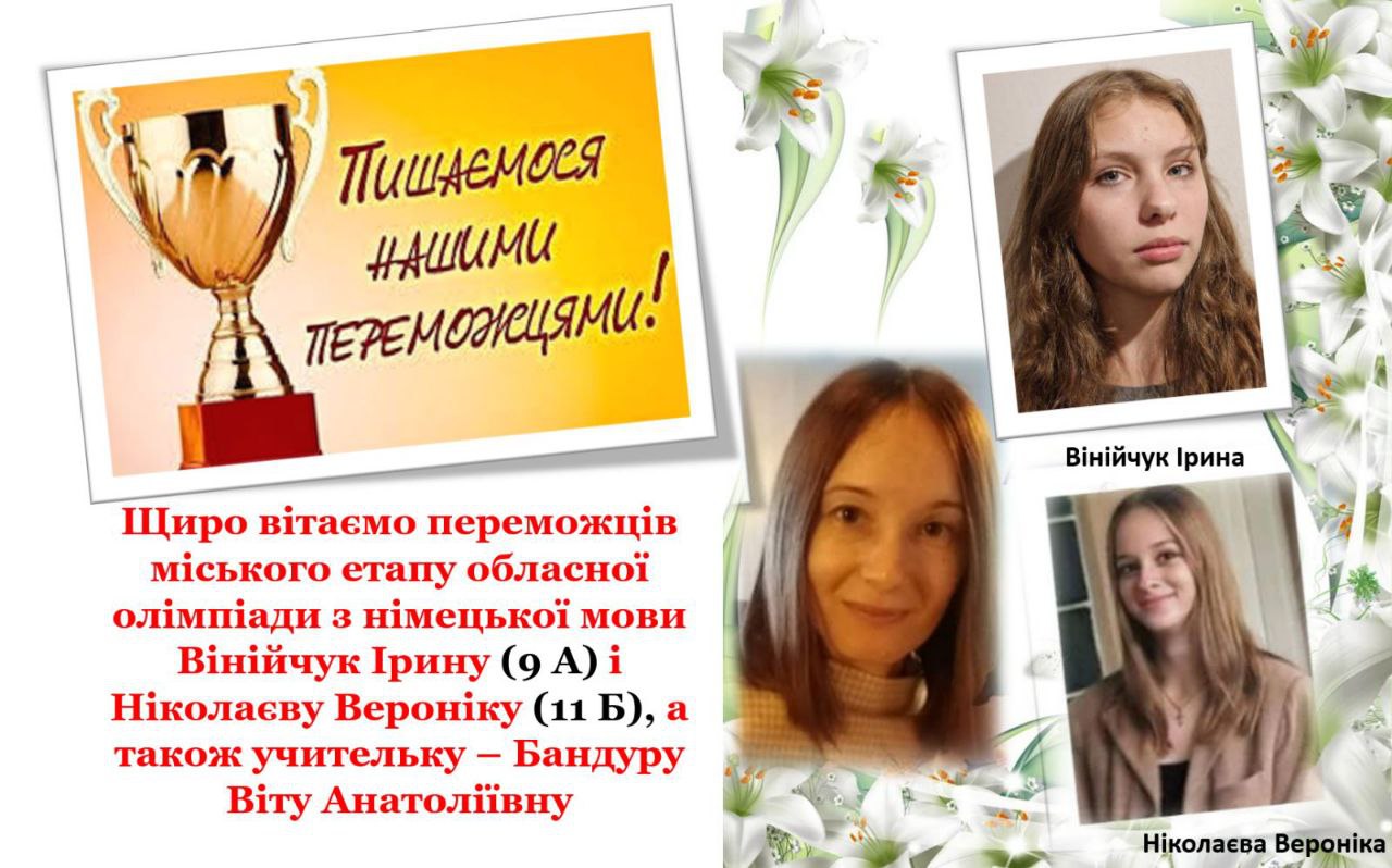 Вітаємо з перемогою на міському етапі обласної олімпіади з німецької мови - 2025!