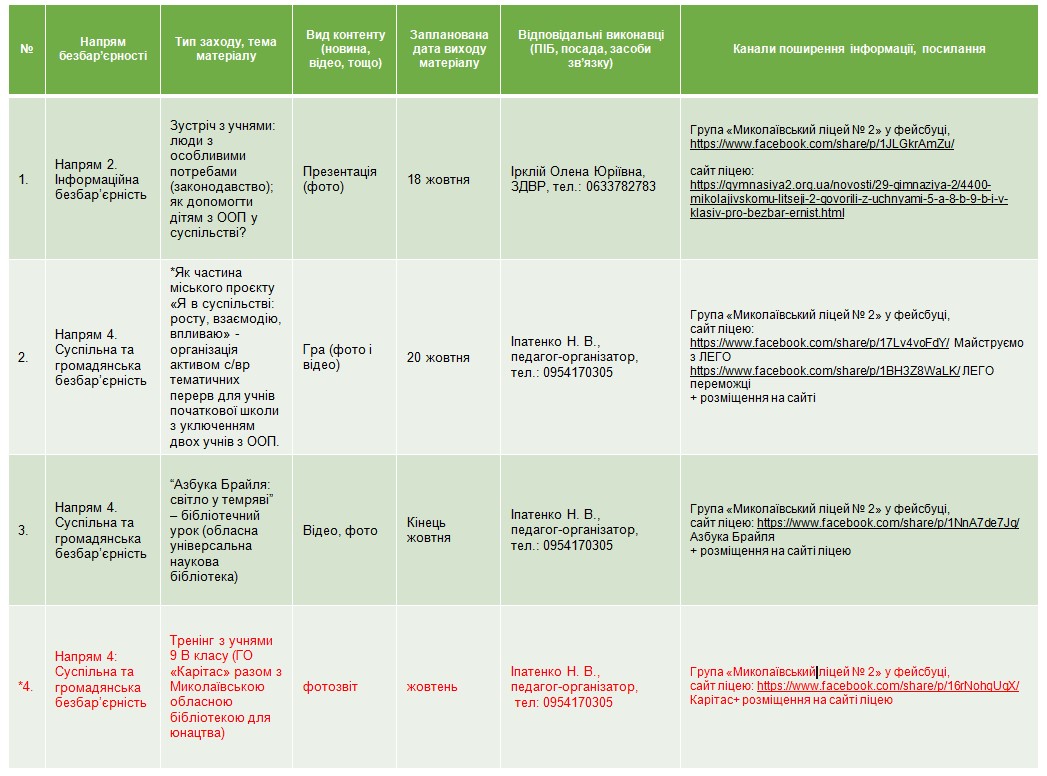 Звіт заходів створення безбар'єрного простору за жовтень 2025 р.