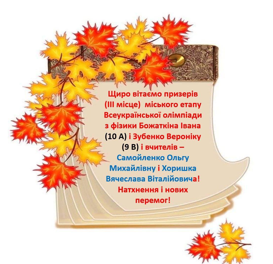 Вітаємо призерів міського етапу Всеукраїнської олімпіади з фізики - 2025!