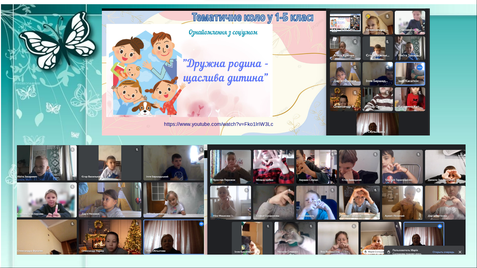 Від народження кожен із нас перебуває в оточенні своєї родини, яка турбується про нас, допомагає нам. Людина сильна тоді, коли вона не самотня, коли її є кому підтримати, коли в неї є сім′я. Бо сім′я – це наша опора, це той причал, до якого пристаєш, ховаючись від лиха і негоди, де знаходиш спокій і затишок. Сьогодні учні 1-х класів долучились до акції. На тематичному колі "Дружня родина - щаслива дитина" першокласники розповідали про свої родини. Разом з психологом Обльотовою Н.М., розгадували загадки і ребуси, приймали участь у сюжетній грі "Моя родина". Робили малюнки "Моя сім'я". А ще дивились мультфільм і танцювали під веселу пісню Наталії Май "Родина"