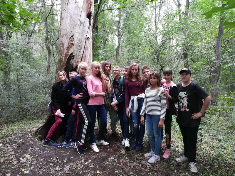 Екскурсія почалася у Трикратському лісі, його ще називають лабіринтом, де ми прогулялися стежками лісу до трьохсот літнього сторожили Дуба Кохання. Є легенда, якщо його обійти 3 рази, можна зустріти справжнє кохання. У цьому лісі ще багато дубів-дідусів, яким 120-170 років. Ще у Трикратському лісі багато тварин. Можна зустріти