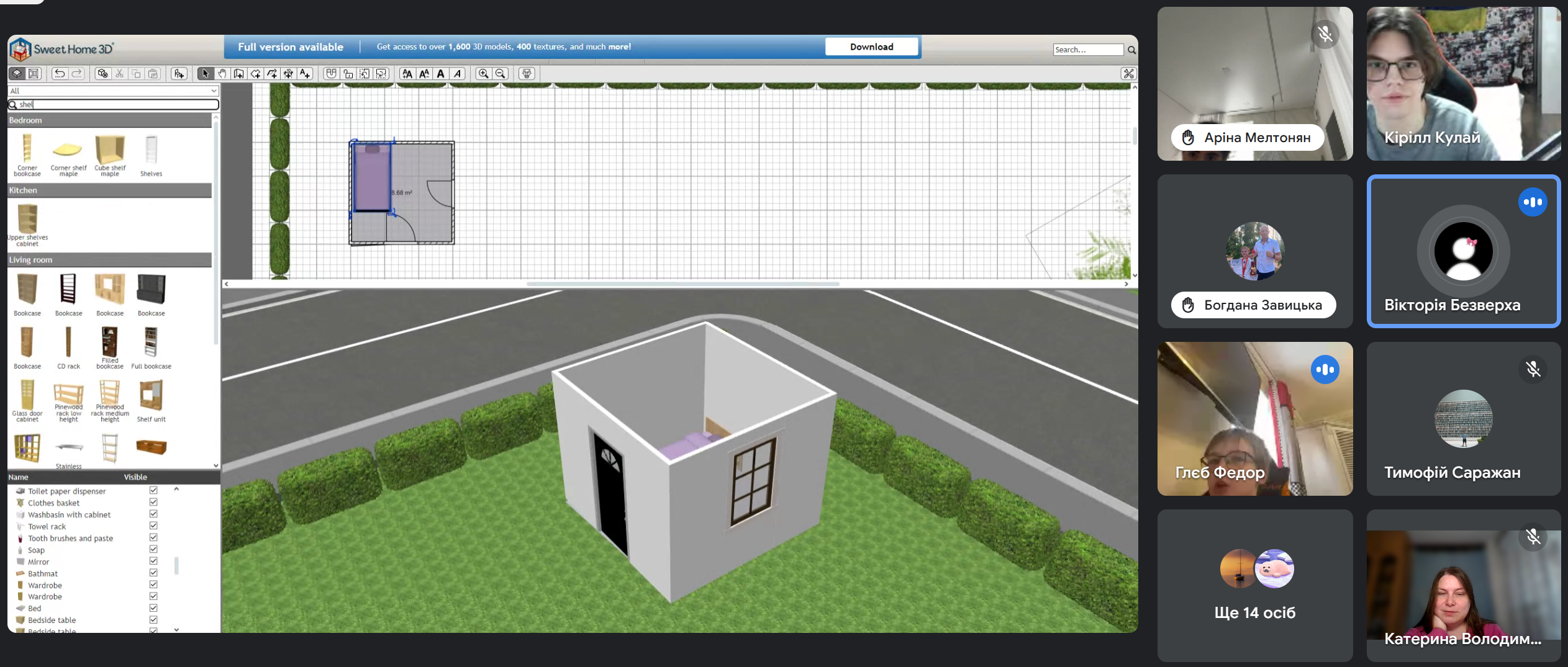 Практична частина майстер-класу містила інструкцію щодо застосування програми Sweet Home 3D. В режимі online створювалася модель будинка та інтер’єру, відповідно до замовлень та за участю учнів п’ятого класу, одночасно практикуючі англійську мову завдяки роботі з англомовним інтерфейсом.